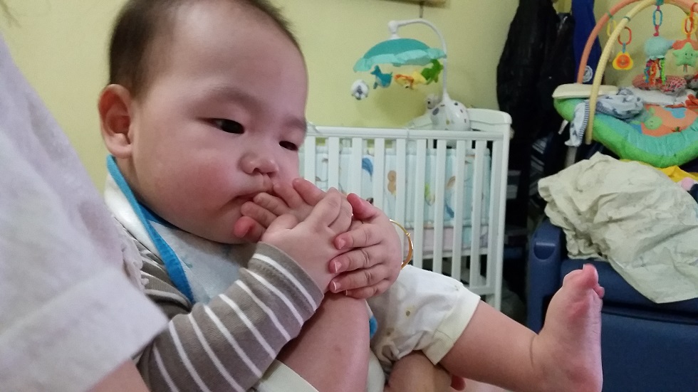 Tasting his little feet